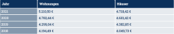 Folgende Tabelle enthält die Entwicklung der Kaufpreise pro Quadratmeter für Häuser und Wohnungen: